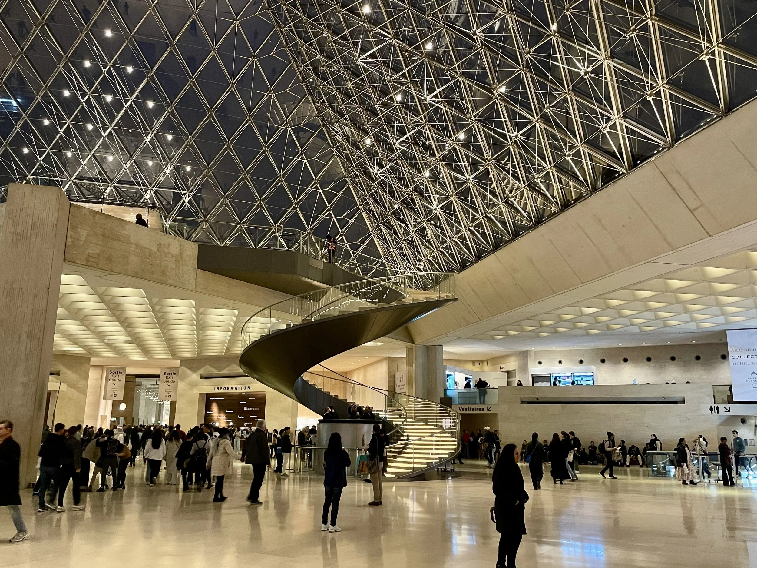 Weil sich vom ersten Moment an alles so anfühlt wie immer, geht unser Weg direkt ins künstlerische Herz von Paris, in den Louvre. Knapp eine Stunde später stehen wir dann auch schon unter Peis gläserner Pyramide im „Caroussel du Louvre“, dem bahnhofsgleichen Eingangsbereich des Museums, dessen Geschäftigkeit mich stets verwirrt. Kein Wunder, fünf Millionen Besucher und Besucherinnen im Jahr wollen geschluckt, sortiert und bedient werden. So drehe auch ich mich suchend im Kreis. Wo wird sie denn nun gezeigt, die überall plakatierte Hommage an den französischen Nationalmaler Jacques-Louis David (1748-1825), der in diesem Jahr seinen 200. Todestag feiert. Weder im Sully, Richelieu oder Denon-Flügel, David gibt sich gleich hier unten die Ehre, in der Halle Napoléon. Wie passend!