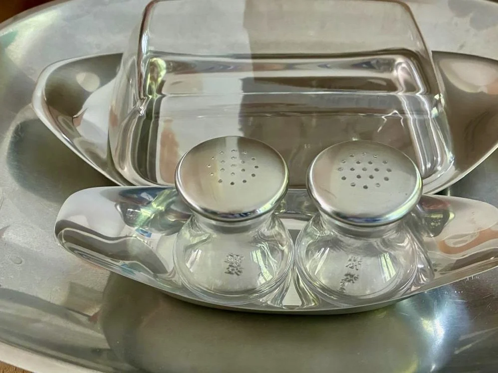 Wilhelm Wagenfeld: Salz- und Pfefferstreuer “Max und Moritz” und Butterdose, 2025 © Heike Preier